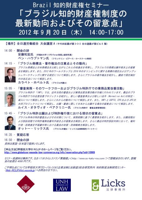 さて、来る9月20日の全日通霞が関ビルにおいて、Brazil知的財産権セミナー「ブラジル知的財産権制度の最新の留意点・活動」が開催され、筆者が講演者として出番することになりました。